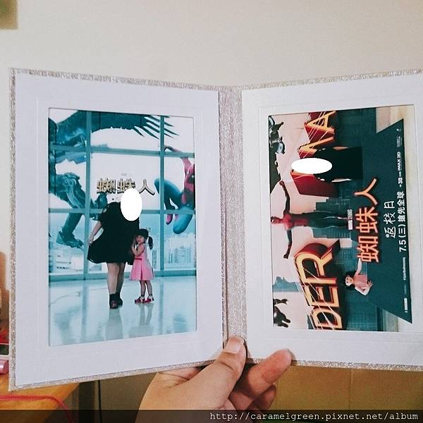 另一個在日式庭園前,是一個立體、正在吐絲的蜘蛛人,兩者皆可選,第1張照片免費,第2張起只要多100元,還送1個超精緻的照片收藏卡冊。