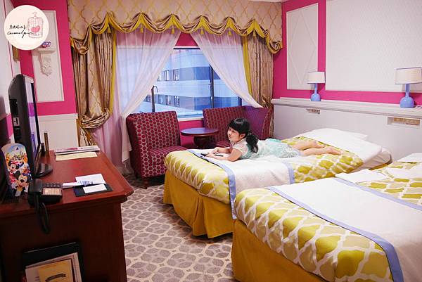 一進到房間內,除了大坪數以外,就是好夢幻的桃紅色宮廷風,以及兩張獨立的睡床啊~~~