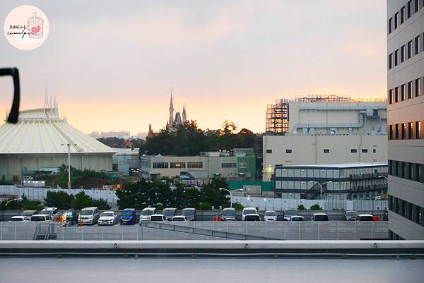 從窗戶就能看到灰姑娘城堡、明日世界的太空山、煙火,右方鷹架部分,則是明年2020年就會開放的美女與野獸城堡園區。