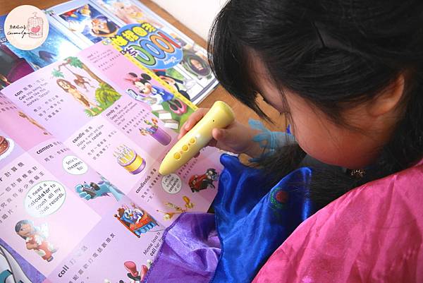 迪士尼控看過來~新苗文化特別取得香港正版授權,推出繁體中文、英文、粵語(廣東話)三重奏的學習點讀寶典,這套書很棒哦!有別於市面上中英雙語,新苗多加了廣東話版本,我們可以用充電式的點讀筆,點選書頁上的C跟M來切換語言。